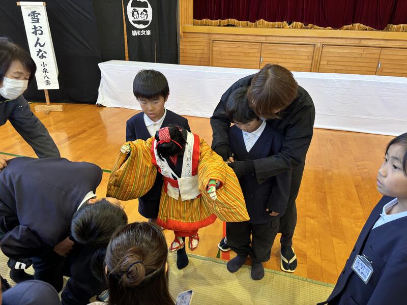 【学校行事】人形浄瑠璃「清和文楽」鑑賞・体験(熊本県いきいき芸術体験教室)