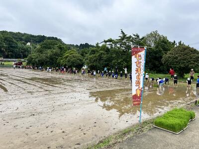 【5年】田植えに挑戦しました 投稿日時 : 2024/06/26 学校サイト管理者 今日の5年生は、「田植え」に挑戦しました。 先日、竜北西部小で「種まき」をしたところですが、立派な「苗」に育っていました。 氷川ツーリズムの陳野さんをはじめ関係者の皆さんから説明や注意事項を聞き、田植えに取り組みました。 今日は、本校だけでなく、竜西小、宮原小の3校の5年生が集まっての田植えです。 一斉に取り組む姿は、とてもほほえましいものでした。 そして、だんだんと慣れて上手になっていく姿にたくましさを感じました。 とっても貴重な体験の機会となりました。 本日の「田植え」に関わっていただきましたすべての皆様に改めて感謝申し上げます。 Tweet {{options.likeCount}} {{options.likeCount}}