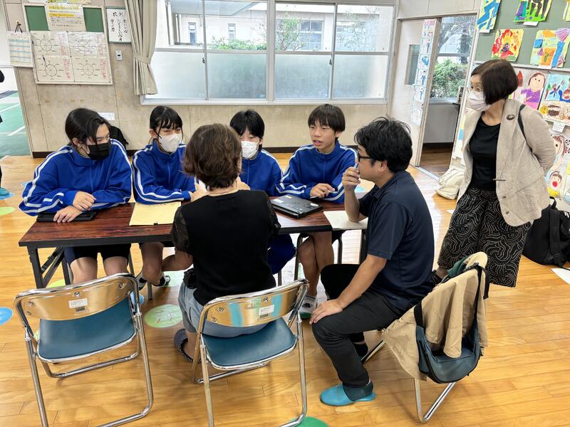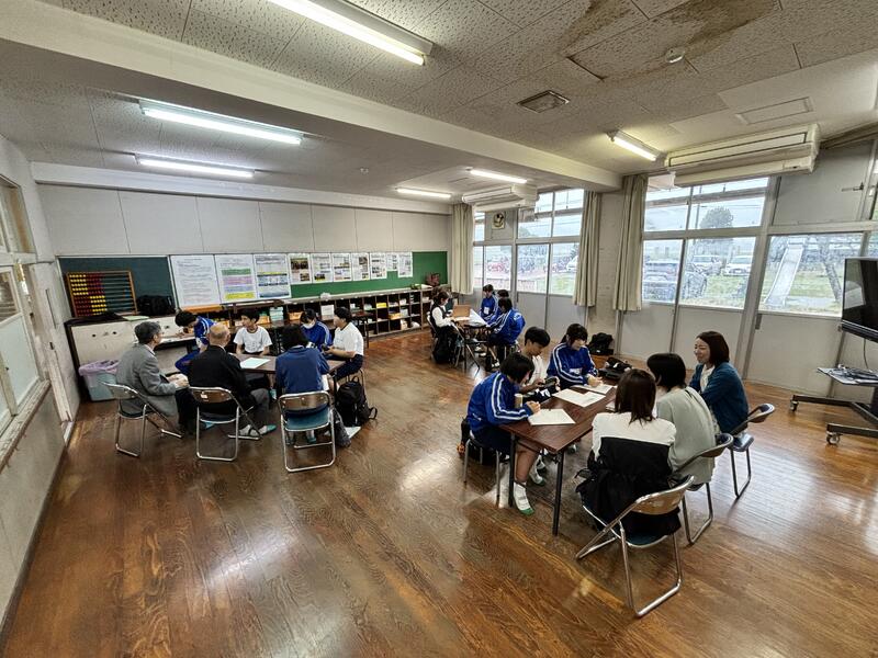 中学生による交流授業が終わると、中学生とCS委員で、今日の授業やこれまでの取組について「振り返り」を行いました。
