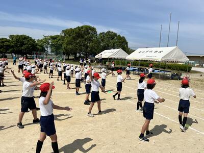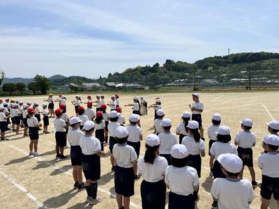 応援団の子どもたちがリーダーシップを発揮し、全校で応援練習を行っていました。