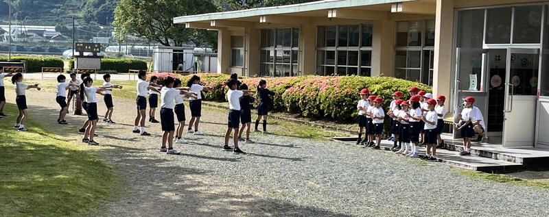 朝の健康観察の時間の後、元気な声が中庭から聞こえてきました。