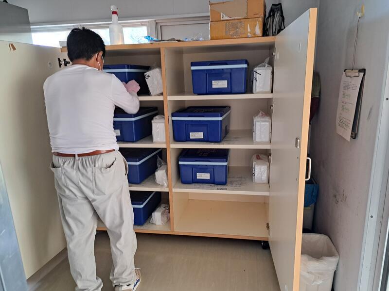 学校に運ばれたお弁当やご飯は、検品したり温度を測ったりそして学年毎に仕分けたりと、職員も給食調理場の方も大忙しです。