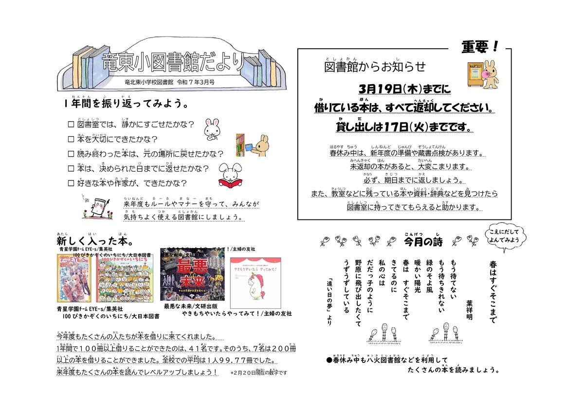 【図書室】図書館だより3月号を発行しました
