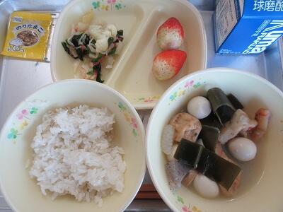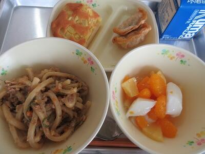 今日もおいしくいただきました。昨日の給食中止の関係で、今日のメニューは2月7日(月)の献立でした。「にくしのだのふくめに」は、味がしみしみでとってもおいしかったです。子どもたちも、お休みの友だちの分を半分ずつおかわりをしていました。