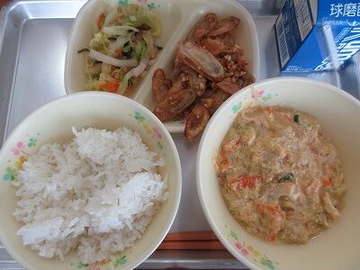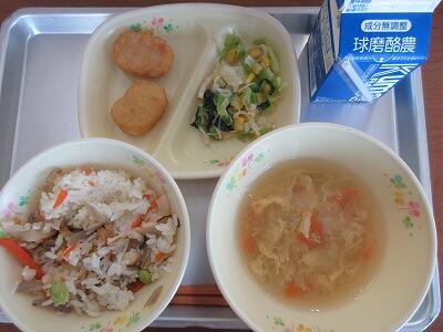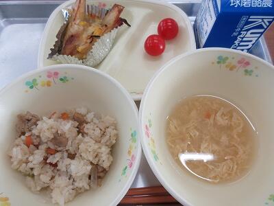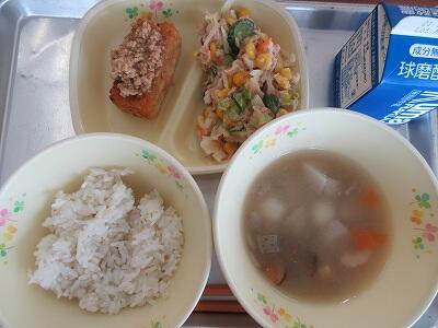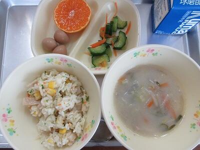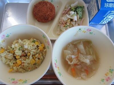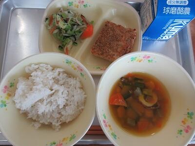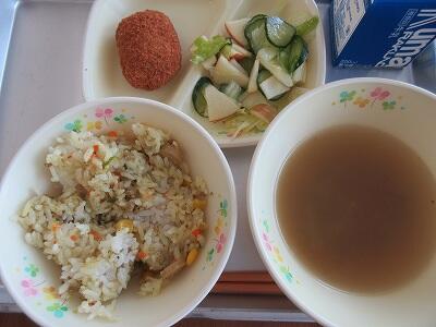 今日もおいしくいただきました。4時間目の終わりころ、なんだかおいしそうな香りがただよっていました。おいしいにおいの正体は、カレーピラフでした(^_^)