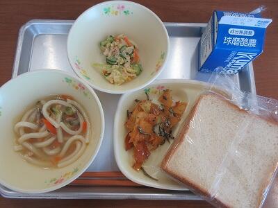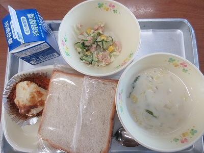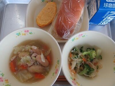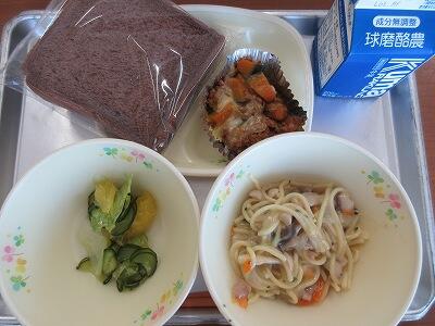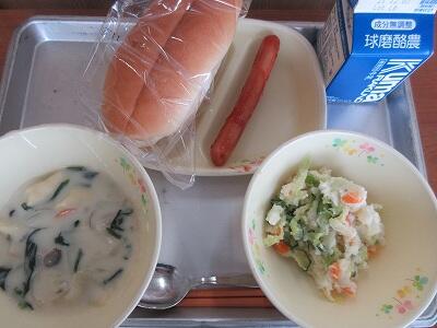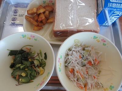 今日もおいしくいただきました。気温が上がらず肌寒い1日でしたが、給食のいいにおいに「はらへったー」と食欲の秋。手作りサツマイモパンは、さつまいもごろごろで食べ応え抜群でした。
