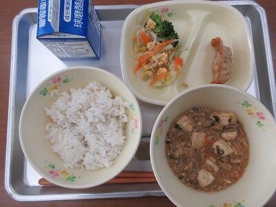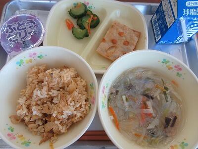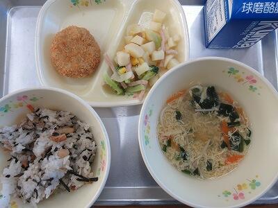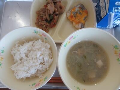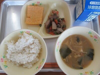 今日もおいしくいただきました。今週から給食当番(大きいおかず)の子がいました。その子が「今日の大きいおかず、何かな?何をつぐのかな?」とはりきっていました。今日は「おやこに」。献立を見て、「おやこどんみたいなやつかなぁ♪」とわくわくの様子でした。そして下校のときに、「やったぁ~明日はお弁当の日だぁ♪」と聞こえてきました。