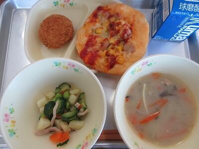今日もおいしくいただきました。朝から「今日は手作りピザパンですよ!」と声をかけてくれた子がいました。私も思わず「やったーーー!」と言いました。パンの生地から手作りのおいしいおいしいピザパンでした。
