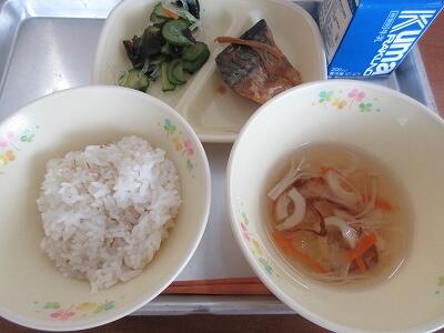 今日もおいしくいただきました。サバのみそ煮は、ショウガたっぷりでした。ちなみに、氷川町でとれた新ショウガだそうです。