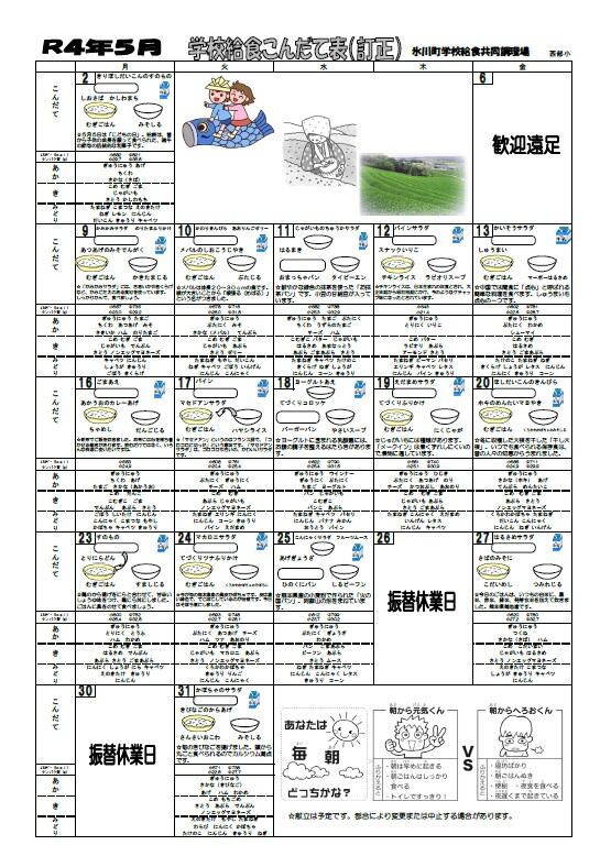 5月給食献立表PDFはこちら→5月給食献立表.pdf