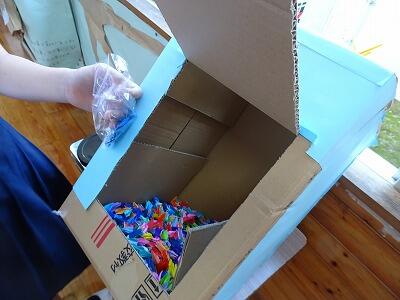 給食に出されるとうもろこしの皮むきを2年生が一生懸命がんばってくれました。