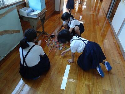近づくと、色とりどりの折り鶴が廊下に散乱し、それを6年生の3人が必死になって集めておりました。