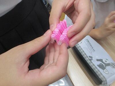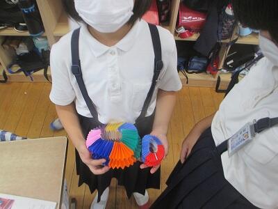 何を作っているのか見せてもらうと、色紙で作った作品が出来上がっていました。
