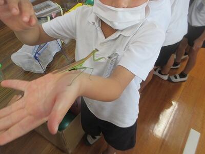 1年生は虫取りに夢中のようです。廊下に置いてある虫かごの前に「虫取り王」が仁王立ちしていたので、つい写真を撮りました。かっこいい~!(実は虫取りに行く前なので、実力のほどはわかりませんでしたが、あとから虫かごを覗いたら、たくさん入っていたので、相当の実力の持ち主に違いありません。)以上。