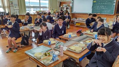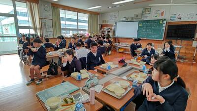 4年生もオリジナル恵方巻きで今日の給食を楽しみました