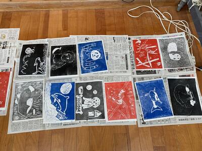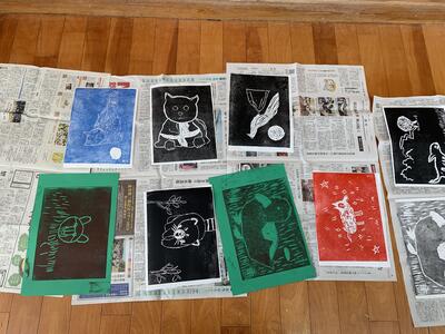 最後の授業は版画でしめくくりました