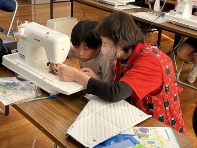 扱いにも慣れ、サクサクと縫い進めていました。縫うのが不安な子どもたちも、下鹿島婦人会や