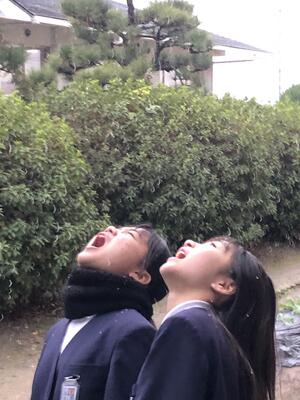 ぼうしの中に たまった雪を うれしそうに見せてくれた4年生