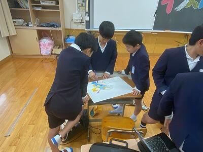 大きい紙に、下書きを描いては消してをくり返していたイラストクラブのみなさんですが・・・