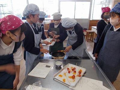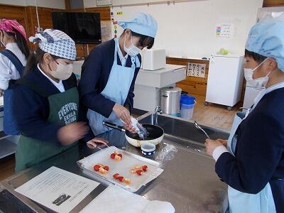 ちょっと煮つめすぎて苦くなったり、加熱時間が少なくてザラザラになったり、、、でも、うまくいった班もあり、おいしいフルーツあめが出来上がりました