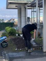 朝7時から8時までの1時間で、運動場、そよかぜ学級前の花壇がすっきりときれいになりました。子どもたちも何人が来て運動場の「宝探し」(石拾い)をしていました。