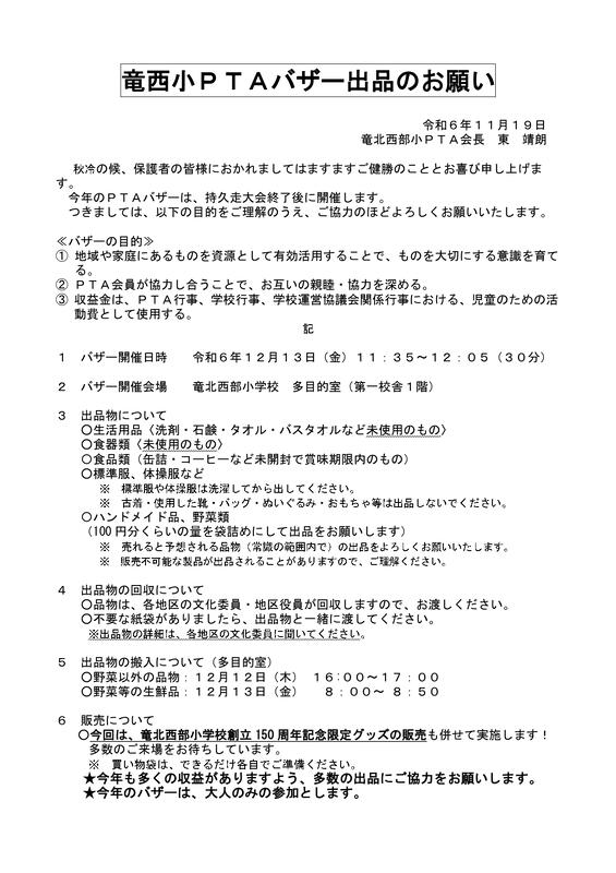 PTAバザーへの御協力をお願いします!