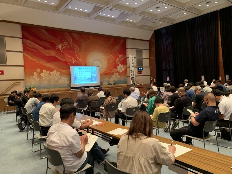 7月22日(土)に文化センター講堂で、防災に関する講演会を開催しました。当日の参加者は83名。竜北西部小学校は事務局として、PTA役員や文化委員を中心に、準備や司会等の運営をテキパキとやっていただきました。講師の柳原志保さんの歌や話も素晴らしく、あっという間に過ぎた実りある90分でした。 |