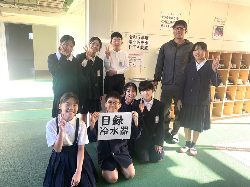 11月1日に、PTAからウォータークーラーを設置していただきました。当日は、PTA会長から「ルールを守って大事につかってください。」とあいさつがあり、早速、使用開始しました。休み時間には、子どもたちが行列を作り、おいしそうに飲む姿が見られました。いつでも冷たい水でのどを潤すことができるとあって、大喜びでした!