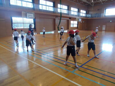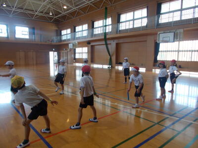 「ダンス・リレー・かけっこ」の れんしゅうを がんばっています