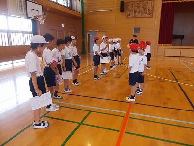 うんどう会の きょうぎの名前と ほうそうすることばをかんがえたものを 子どもたちにつたえました。