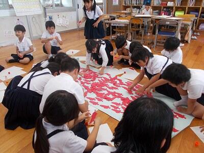 2年生の子どもたち、 ひとりひとりが いっしょうけんめいに 絵をかきました。