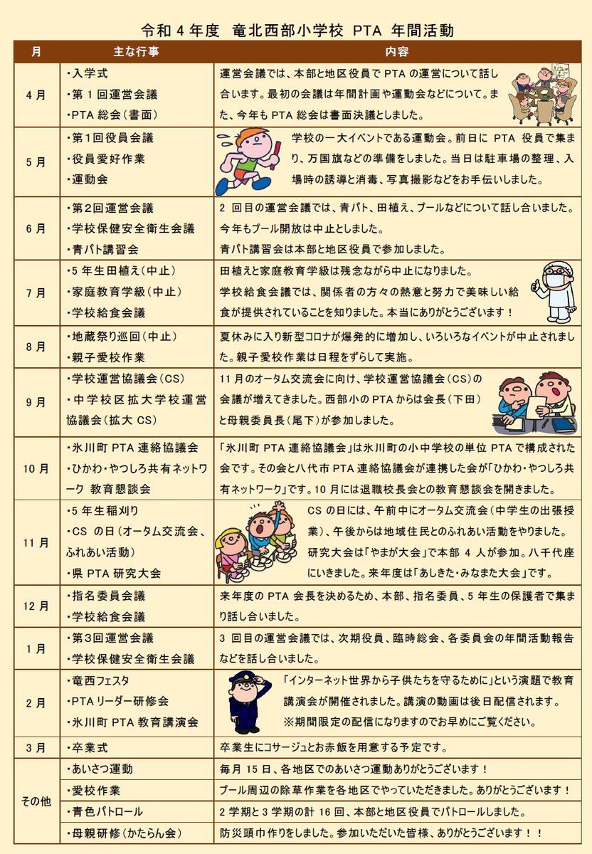 年間行事予定、及び竜西っ子のきまり掲載