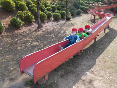 ちょ~う なが~い すべり台を 楽しみましたっ みんなですべると たのしさ倍増!