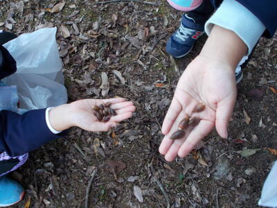 す。どんぐりや いちょうの葉 もみじ・・・などなど どんなものに へんしんするのかな。