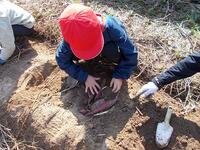 「ここほれ ワンワン」と言いながら いもほりをする 1・2年生でしたっ。