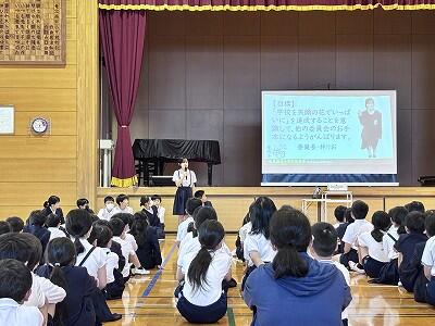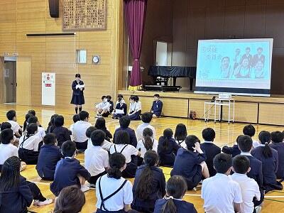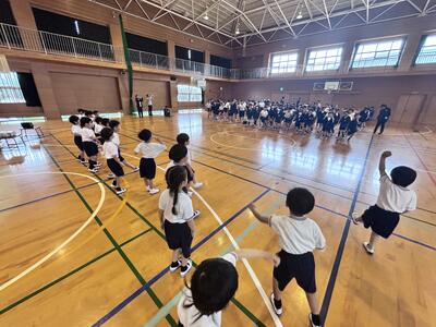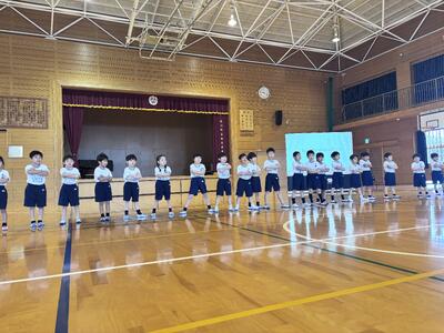 本日は全校で、「狂言ワークショップ」に参加しました。狂言の独読な言い回しや動きに最初は「なんだなんだ~」みたいな顔をしていた子どもたち。セリフの面白さに気づいたり、自分たちがやってみる時間になると徐々にノリノリになり、役を演じることをたくさん楽しめたようでした。