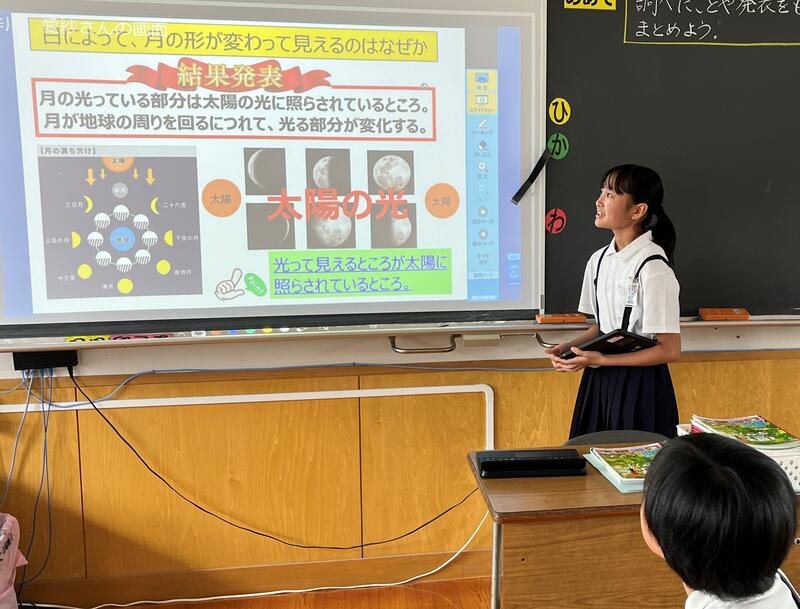 「月と太陽」の学習で、班ごとにテーマを決めて調べたことを発表しました。発表を聞き受け止めた上で、質問やお返しができ、とても意義深い学習となりました。さすが、6年生です!