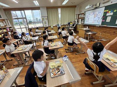 そして給食の時間は読書旬間に合わせて、クイズのビデオが流されました。1年生の教室はクイズに答えたり、当たって喜んだり、と楽しい時間になっていましたね。