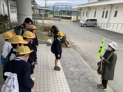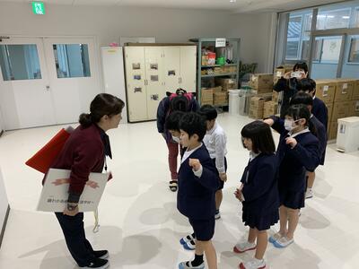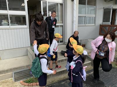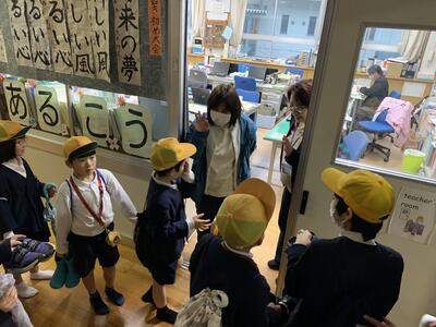 事務の先生や図書の先生にも いってきま~す!と ごあいさつ笑う