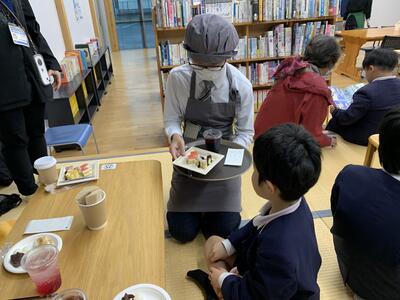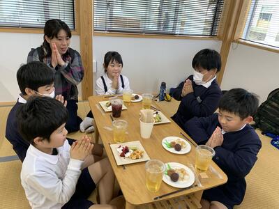 給食のあと みんなでおいしくいただきました花丸