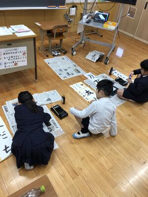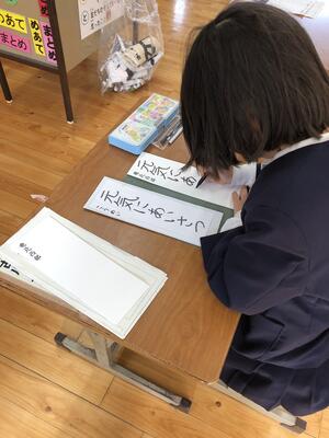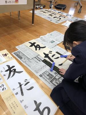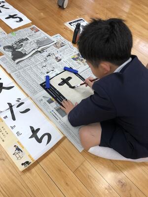 書き初め大会に むけて さいごの練習にとりくみました急ぎ