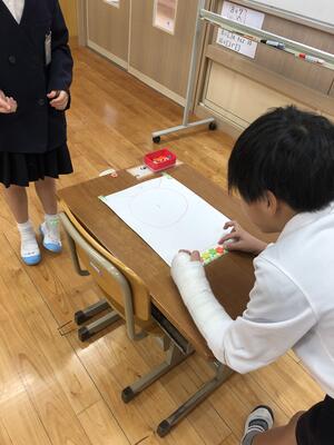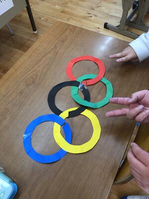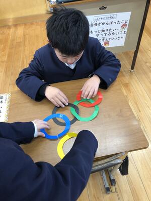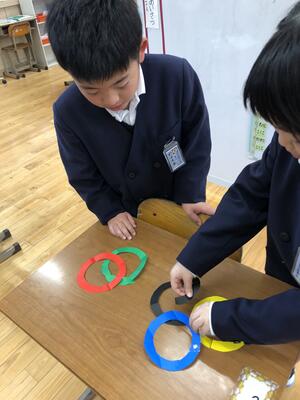 3年生は オリンピックマークを おりがみを使って つくっています。
