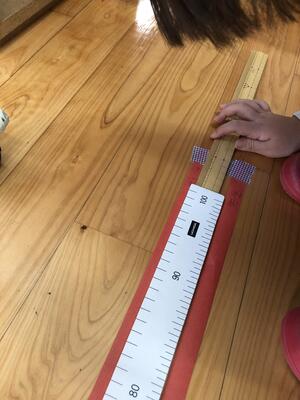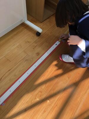 2年生は 1Mってどのくらいか・・・紙テープを切ってはかってみました。にっこり