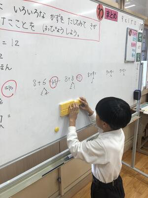 こちらの 2年生は タイルをつかって たし算の練習をしました!