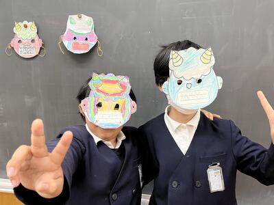 自分の中から追い出したい鬼を書いたお面を作り、