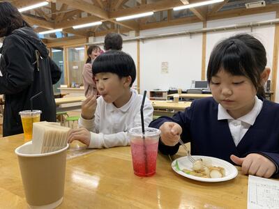 栄養士の先生 地域学校協働活動推進員の方のおかげで 楽しく調理ができましたピース