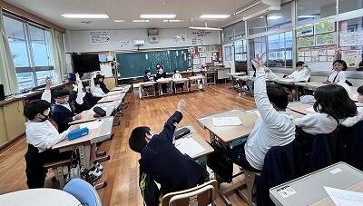 続いてクイズ!1年生がたくさん手を挙げて答えてくれました。 |