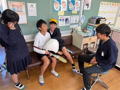 低学年、中学年の子たちが、保健委員をさがしてクイズに答える姿は