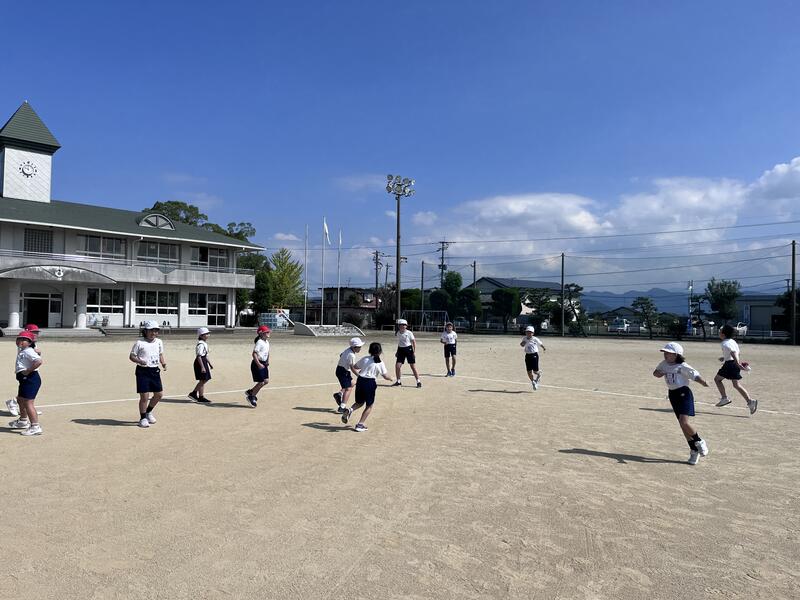 はばとびの準備運動に、スキップ鬼ごっこしてま~す。