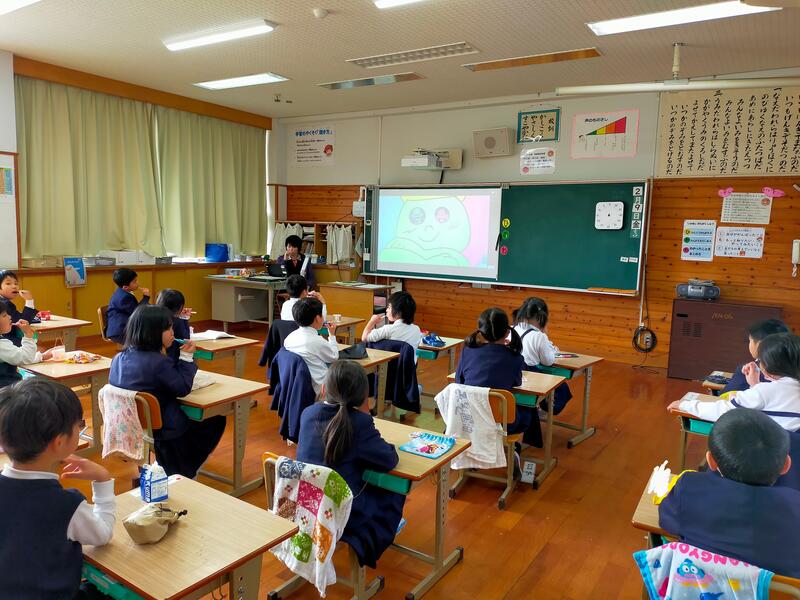 1年生は、とくに きゅうしょくの先生に まい日おせわになっているので、ちょくせつ お手がみを わたしました興奮・ヤッター!ハート